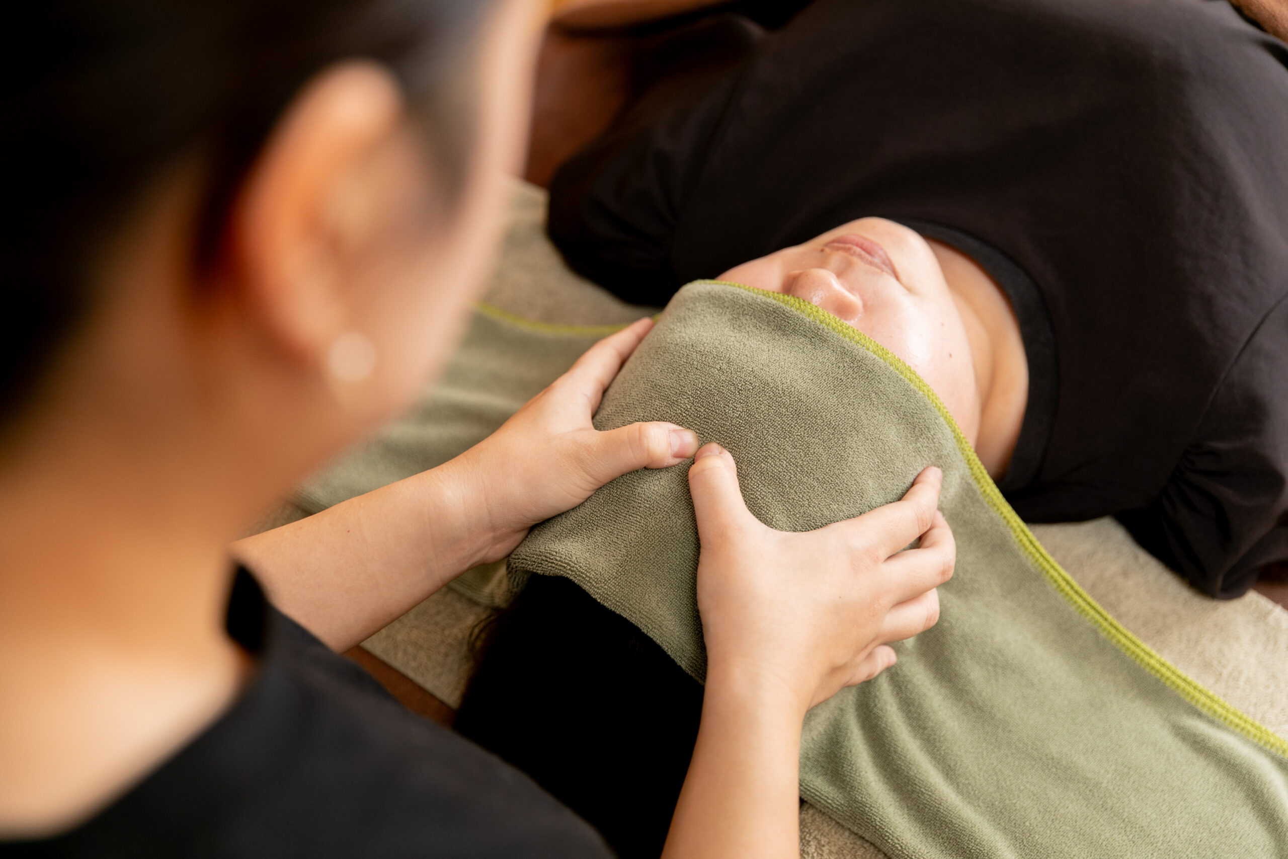 頭部の筋肉をじんわりゆるめ、こわばった神経をリラックス状態へと導きます。