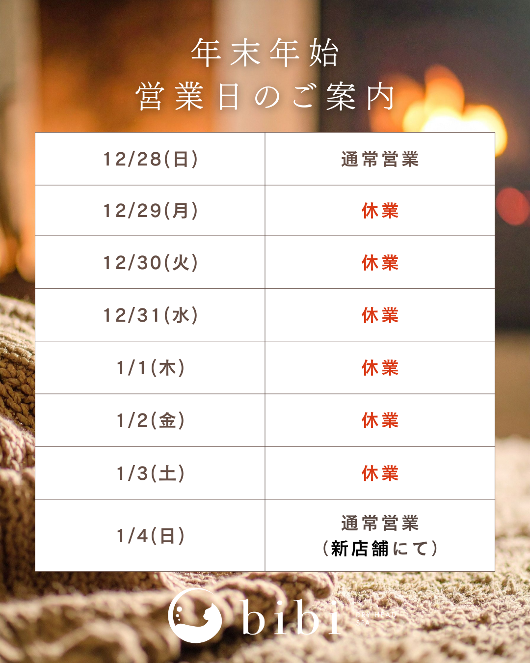 2025年12月28日(日)まで通常通り営業いたします。